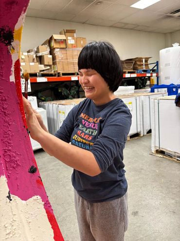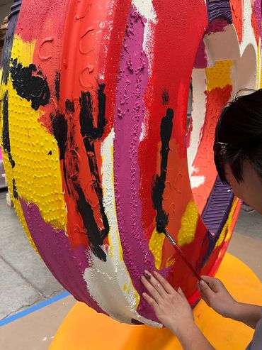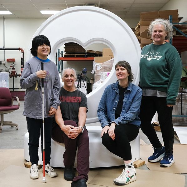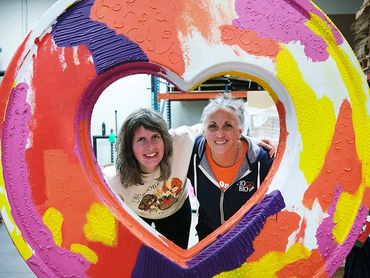 This heart is a collaborative public artwork created by BeiBei Fields, Lisa Cowan, and Katy Cowan centered on accessibility, imagination, and shared ways of experiencing color. Built around bold abstract color, tactile surfaces and collaborative making, the piece invites engagement through touch, listening, and curiosity—welcoming viewers with a range of visual abilities.