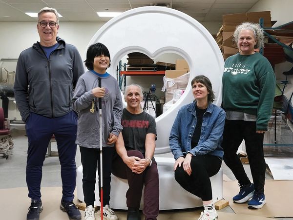 This heart is a collaborative public artwork created by Bei Bei Fields, Lisa Cowan, and Katy Cowan centered on accessibility, imagination, and shared ways of experiencing color. Built around bold abstract color, tactile surfaces and collaborative making, the piece invites engagement through touch, listening, and curiosity—welcoming viewers with a range of visual abilities.