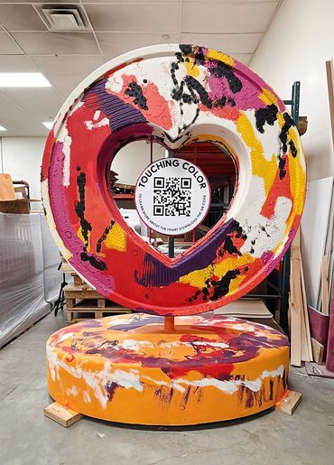 This heart is a collaborative public artwork created by Bei Bei Fields, Lisa Cowan, and Katy Cowan centered on accessibility, imagination, and shared ways of experiencing color. Built around bold abstract color, tactile surfaces and collaborative making, the piece invites engagement through touch, listening, and curiosity—welcoming viewers with a range of visual abilities.